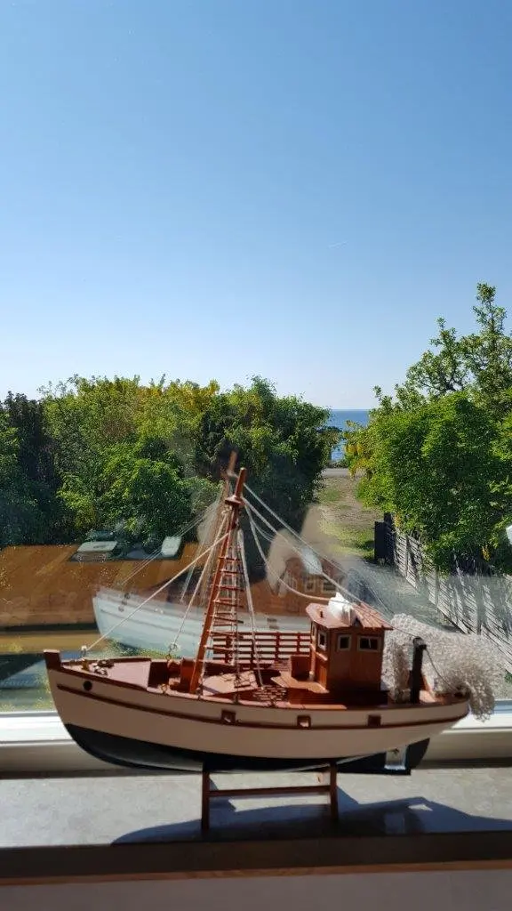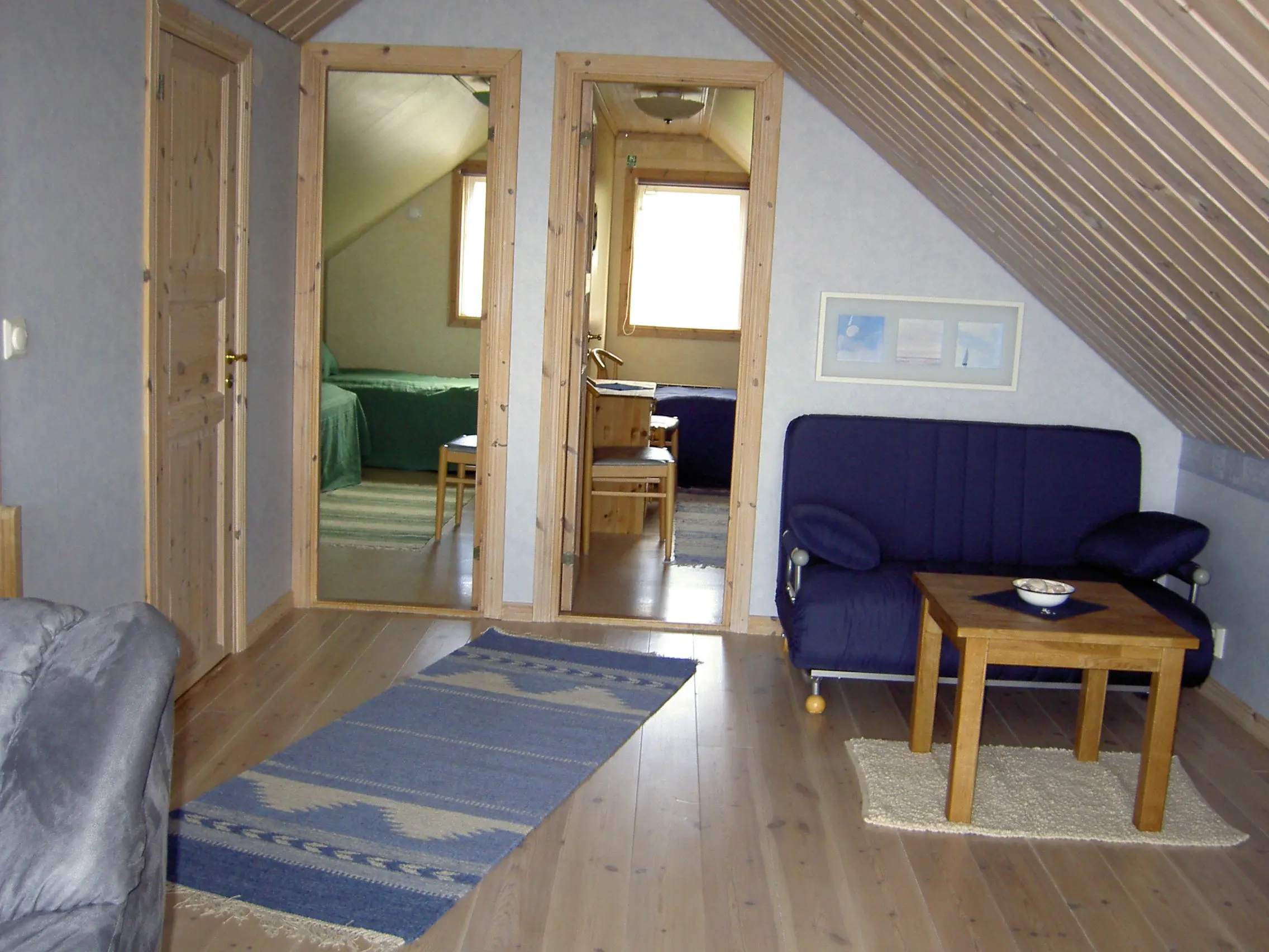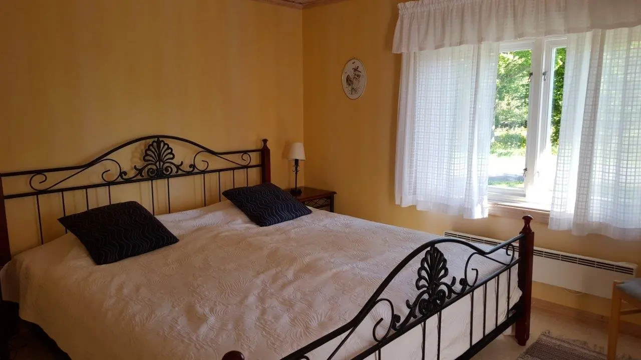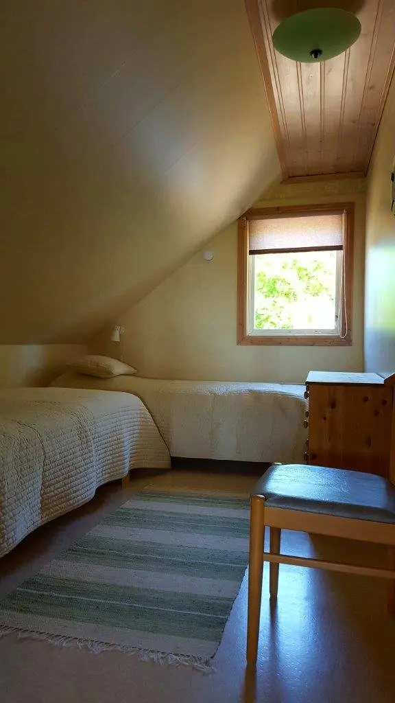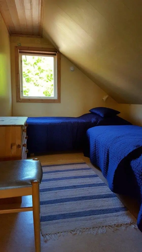 Stugan är modern och har sex bäddar. Fullt utrustat kök, tre sovrum, två toaletter och en dusch. På övervåningen finns ett allrum med stora fönster mot väster och fin havsutsikt. Framför stugan ligger en stor altan med utemöbler och parasoll och grill.