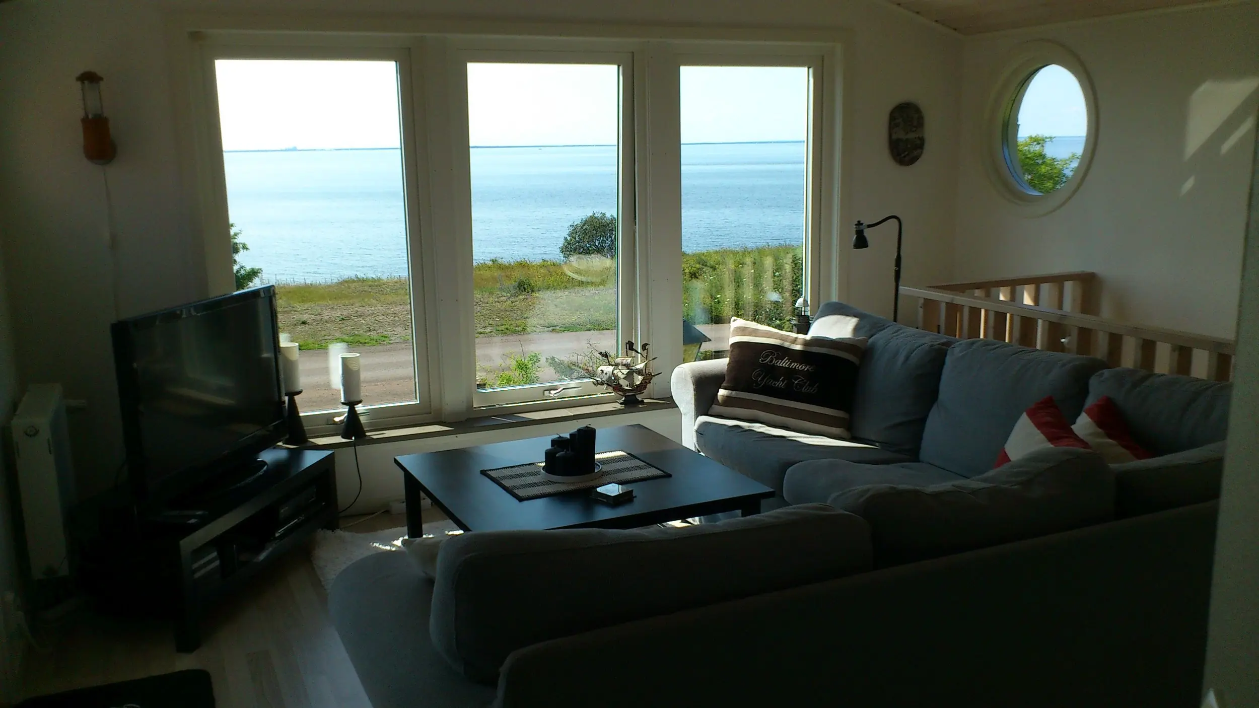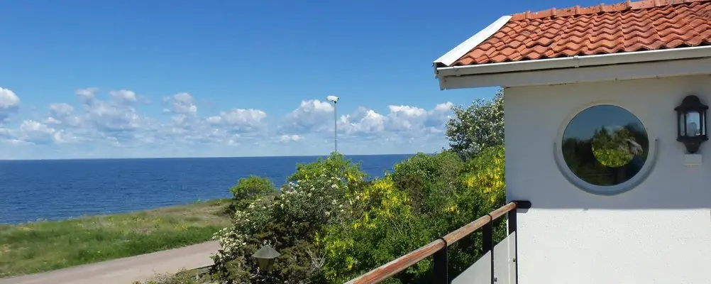 Stor balkong med havsutsikt på övervåningen