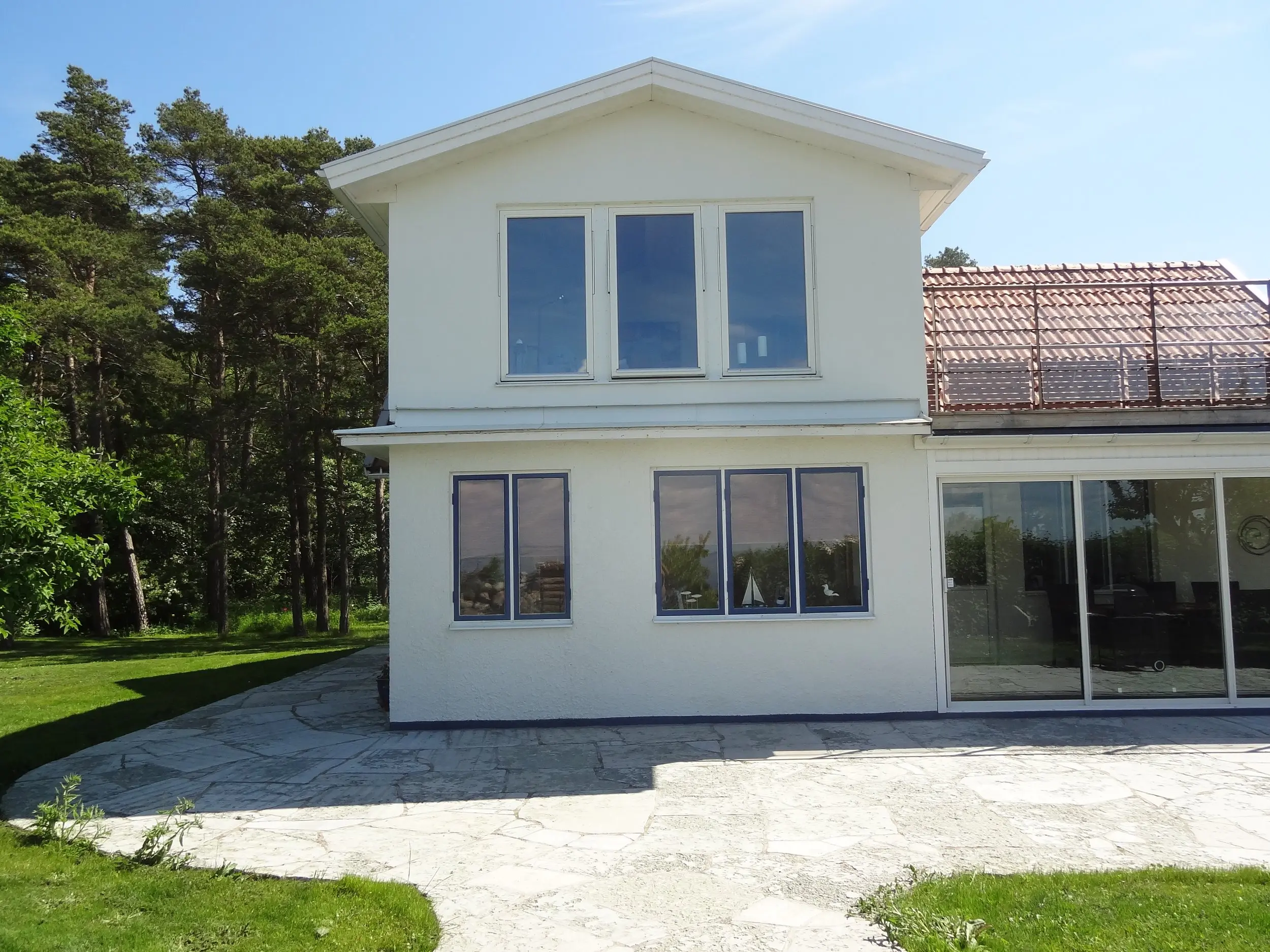 Huset har totalrenoverats och är ett modernt hus med en mycket hög standard. Den har 8 bäddplatser så det passar också bra för två familjer som vill bo tillsammans.